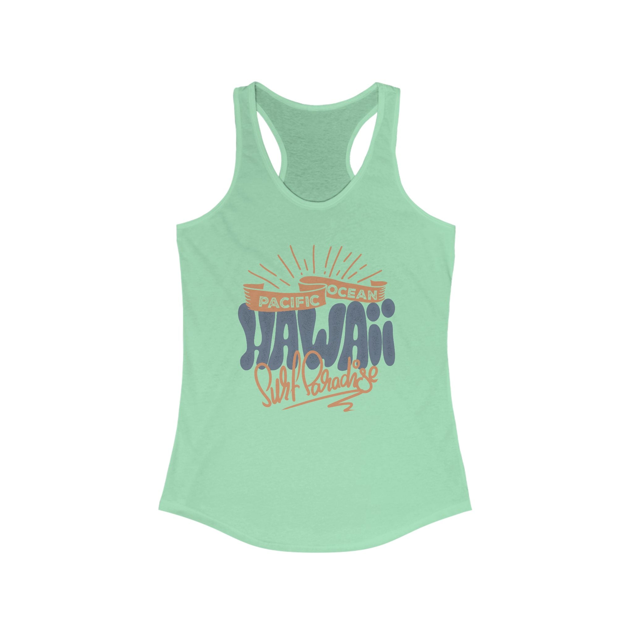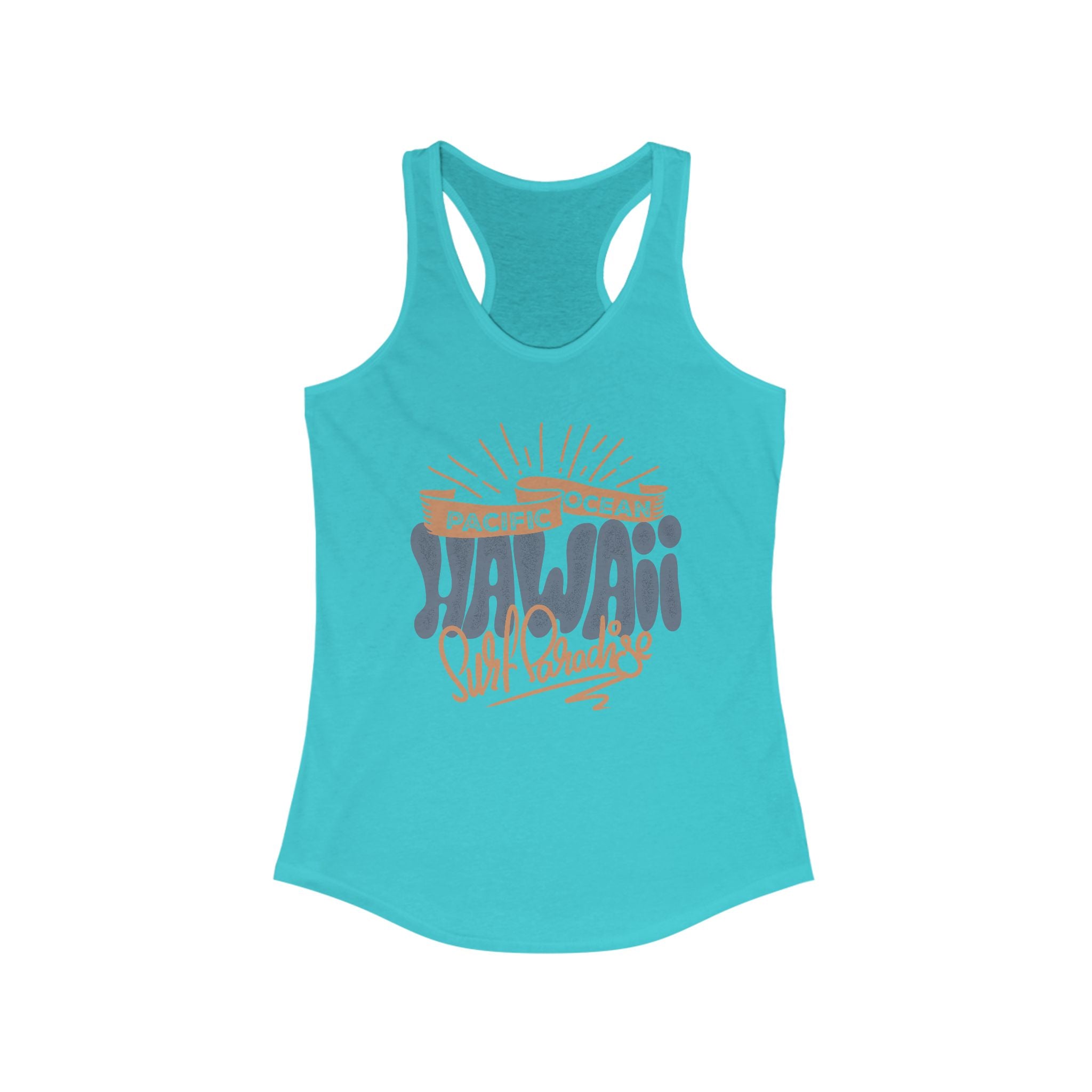 Hawaiian Beach Vibe Racerback Tank, Perfect for Summer, Beach Days, Vacation Wear, Travel Top, Surf Lovers