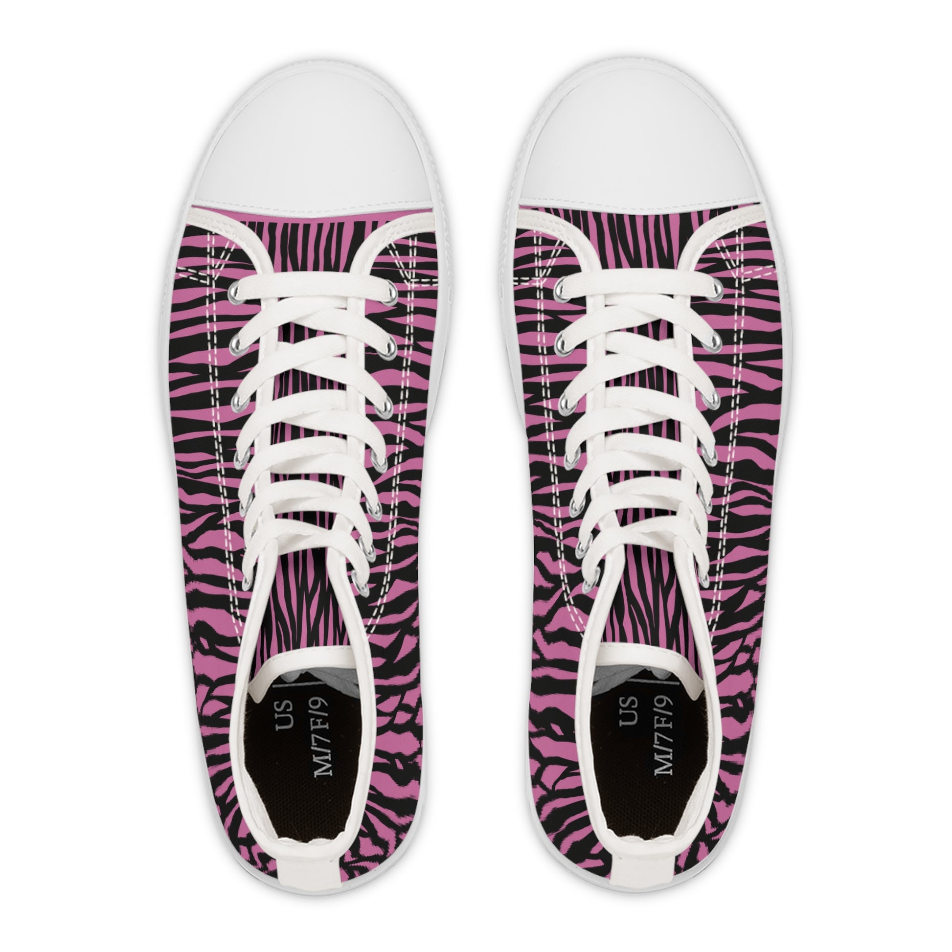 Fierce Pink Zebra High Top Sneakers for Women - Stylish and Edgy Footwear, Trendy Fashion, Unique Street Style, Gift for Her, Everyday Wear