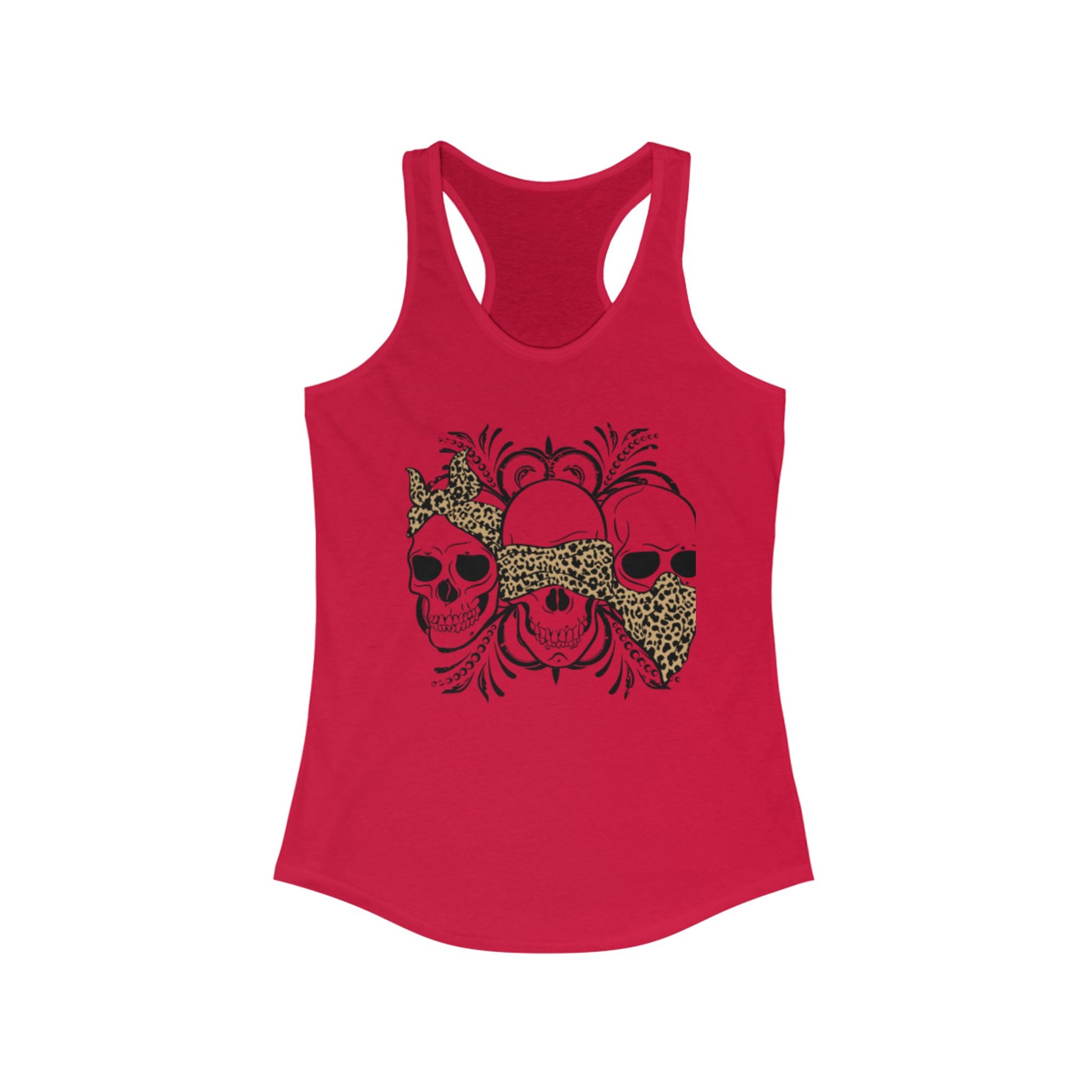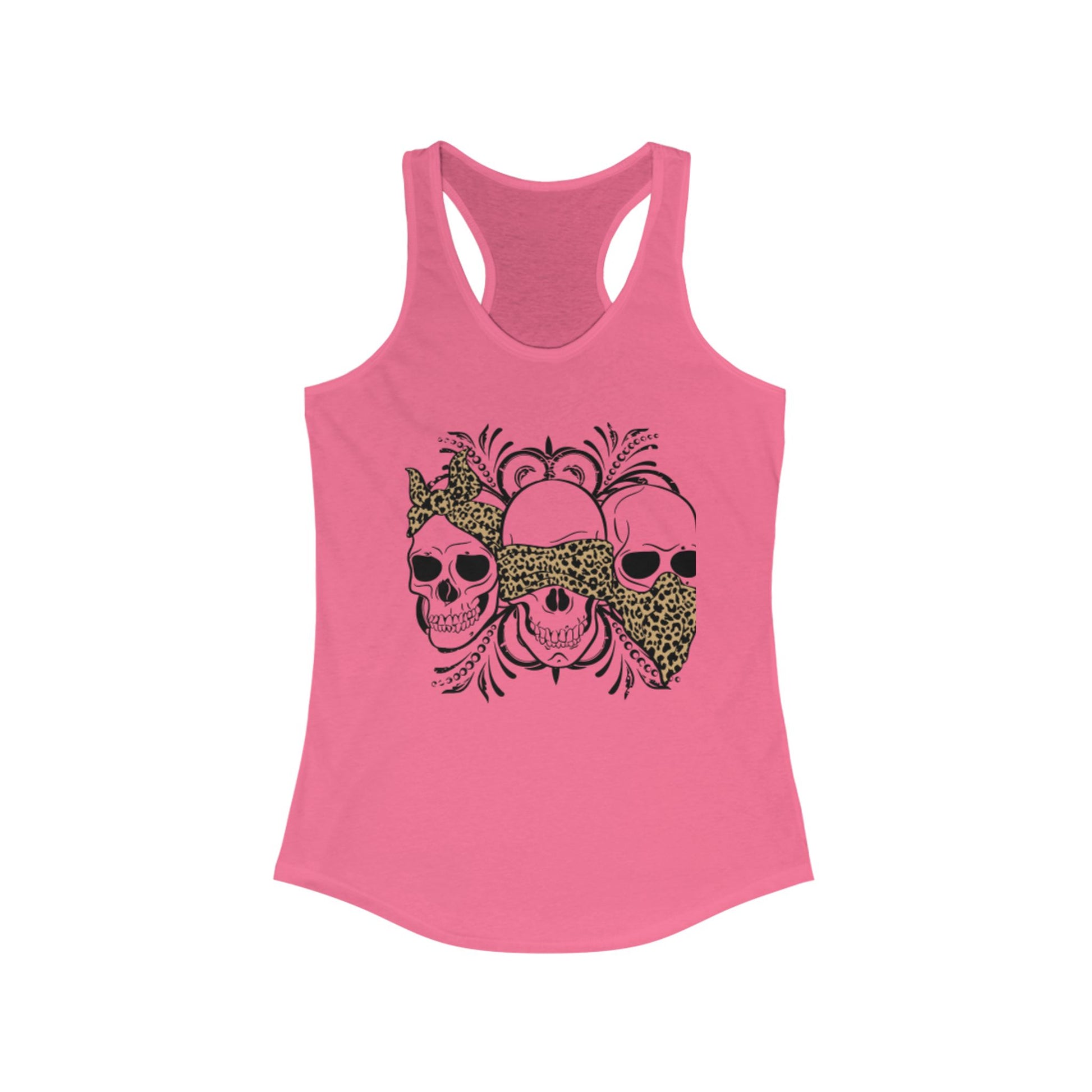 Leopard Print Skull Women's Racerback Tank - Trendy Summer Top