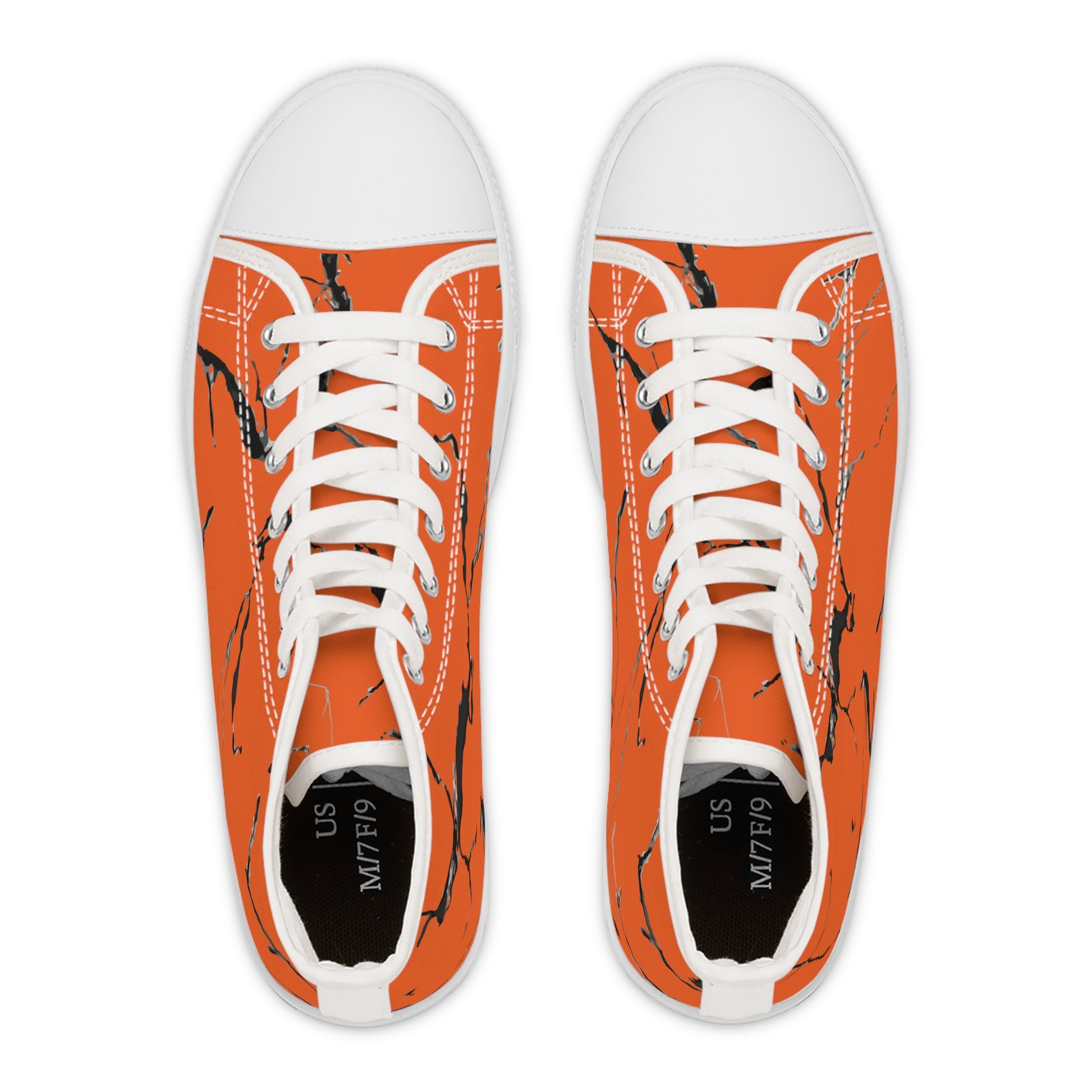 Step out in style with these vibrant Women’s High Top Sneakers. Featuring a stunning full wraparound print, these sneakers are designed to make a statement. The bold orange hue with sleek black accents offers a modern vibe, perfect for casual outings or laid-back gatherings. Made with breathable polyester canvas and durable rubber outsoles, they're ideal for everyday wear, ensuring comfort with every step. Whether you're running errands, hanging out with friends, or just enjoying a day in the park, these sneakers elevate your outfit effortlessly. They make an excellent gift for fashion enthusiasts and are perfect for holidays, birthdays, or any casual celebration where you want to shine.