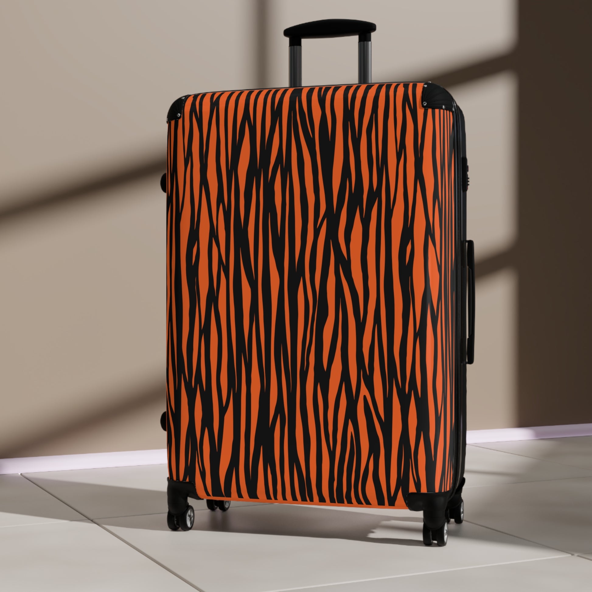 - Tags: Adventure essentials, Durable carry on, Fashionable luggage, Gift for traveler, Jet setter gear, Luggage bag, Orange tiger print, Stylish luggage, Travel accessories, Travel suitcase, Trendy travel gear, Unique suitcase, Vacation must have
